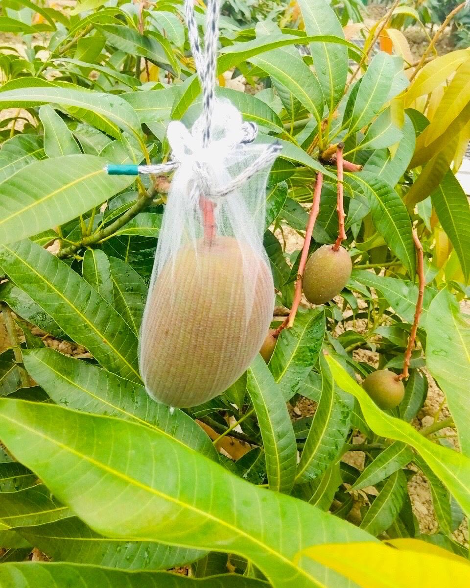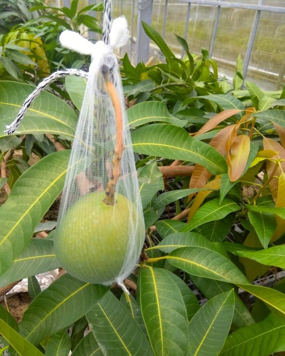 そんな努力をしていても、虫はどこからか侵入してしまう。虫を発見したら砂糖水を吹きかけて、ピンセットで虫を一つずつ除去していく。限りなくマメな作業を繰り返し、やっとマンゴーの実がなったのだ。実は、今年は殆ど収穫しない。木の中のベストマンゴーに栄養がいくために、間引かなければならない。この木のクオリティを上げるために断腸の思いで、育成の悪い実を採っていく。漬物などの二次利用を考えているが、美味しい甘い実は、一つの木で一つだけになるだろう。このプロセスを経て、甘さの遺伝子を作り出し、翌年の豊作へと結びつける。