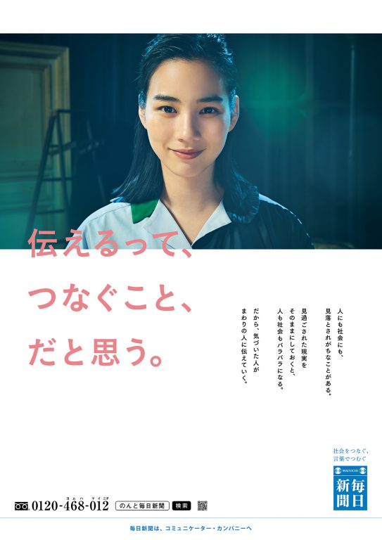 ⾒落とされがちなひとや社会の現実を拾い上げ、その本質を粘り強く報道していくという150年変わらない毎⽇新聞の姿勢について、”のん”がメッセンジャーとなり、⼒強く表現します。