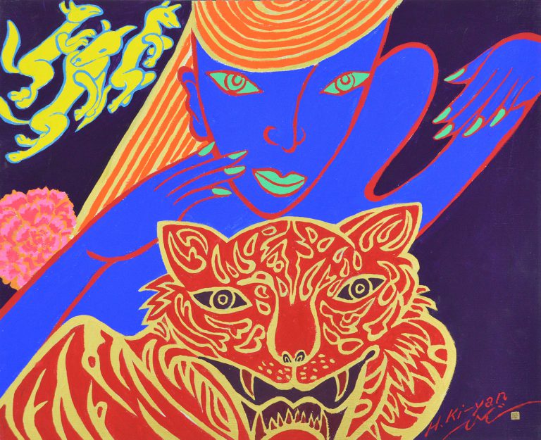 キーヤンは、日本のロック黎明期よりプロデューサーとして活躍し、2002 年の還暦より筆をとった異色の経歴。その作品は、京都・青蓮院門跡 華頂殿の襖絵から関西国際空港、京都市動物園、また商業施設の壁画まで多くがストリートに描かれてきました。